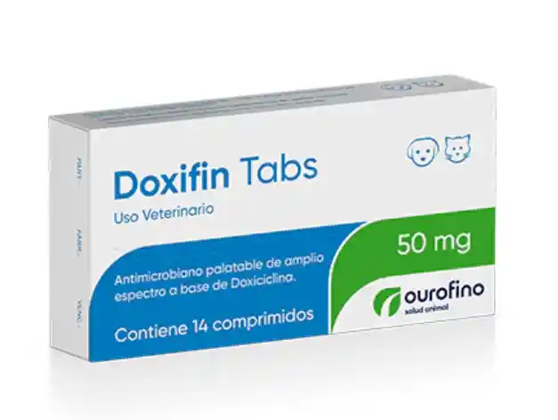 Doxifin Tabs es indicado en perros y gatos para el tratamiento de las infecciones ocasionadas por: Ehrlichia canis: Ehrlichiosis canina. Bordetella bronchiseptica: Traqueobronquitis infecciosa canina, conjuntivitis, rinitis y neumonía. Pasteurella multocida tipo A: faringitis, tonsilitís, otitis, heridas infectadas. Arcanobacterium (Corynebacterium) pyogenes (Trueperella pyogenes): heridas infectadas, lesiones piogénicas e infecciones del tracto genitourinario. Escherichia coli: heridas infectadas, infecciones urinarias, diarreas y gastroenteritis.