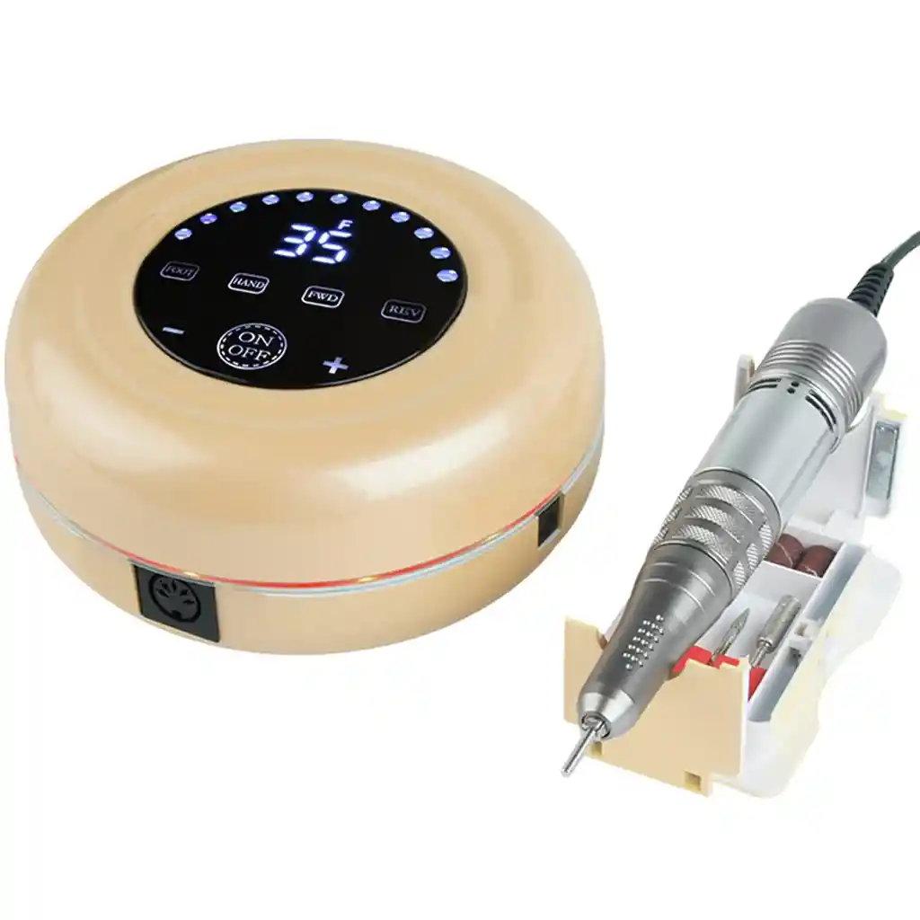 DRILL ELECTRÓNICO PROFESIONAL 35000 RPM JMD-216 : herramienta de alta precisión utilizada principalmente en manicura y pedicura para limar, pulir, dar forma y retirar material (acrílico, gel) de las uñas de manera rápida y eficiente. Ofrece velocidades ajustables ( hasta 35,000 RPM) y giro bidireccional, permitiendo trabajos de limpieza profunda, rebajado de cutículas y acabado uniforme. Usos principales del drill profesional en estética: * Preparación de la uña natural: Limpieza profunda de cutículas y zona periungueal (manicura rusa o en seco). * Modelado y rebajado: Dar forma y reducir grosor en uñas acrílicas, de gel o acrigel. * Retirada de material: Eliminar esmalte semipermanente o sistemas artificiales sin dañar la uña natural, si se usa correctamente. * Pedicura: Alisar callosidades y pulir talones. * Acabado: Pulir la superficie para un acabado liso y uniforme. Ventajas del uso profesional: * Ahorro de tiempo: Reduce drásticamente el tiempo de servicio frente al limado manual. * Ergonomía: Diseñados para reducir la fatiga en la mano del técnico. * Versatilidad: Compatibles con diversas puntas (brocas) para cada tipo de trabajo (cerámica, carburo, diamante).