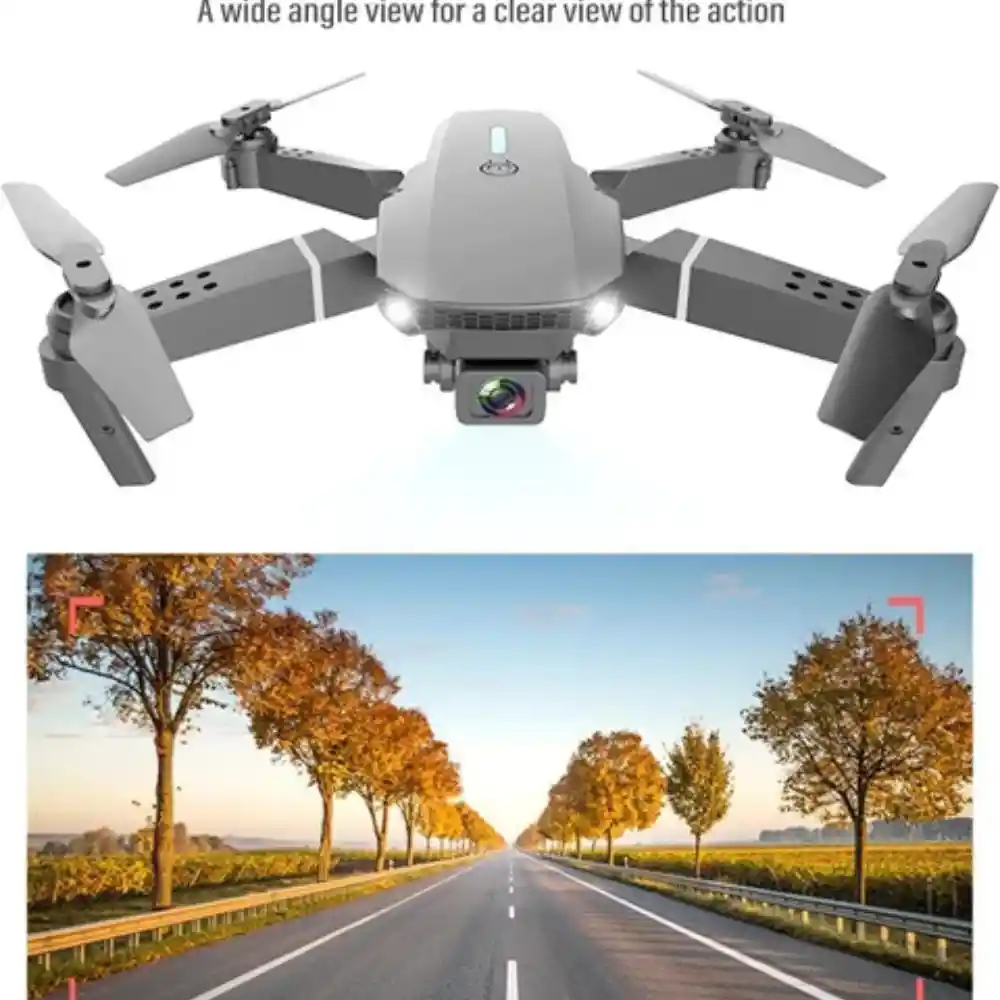 El dron E88 Pro Wifi con cámara plegable es el equipo perfecto para quienes buscan practicidad y calidad en sus aventuras aéreas. Con una cámara HD integrada, podrás grabar cada momento de una manera increíble y compartirlo con tus amigos y familiares. Con un diseño compacto y plegable, el E88 Pro Drone es fácil de transportar y almacenar, lo que te permite llevarlo a donde quieras. Además, tiene una batería de larga duración, lo que garantiza más tiempo de vuelo y diversión. Con el mando a distancia incluido, puedes volar el dron de forma precisa y segura, explorando diferentes ubicaciones y capturando imágenes increíbles. También se incluye la funda de transporte, que proporciona comodidad y protección durante el transporte. El E88 Pro Drone tiene una pieza de repuesto, por lo que no tienes que preocuparte por posibles daños durante el vuelo, ya que tendrá una pieza de repuesto. Especificaciones técnicas: - Modelo: Drone E88 Pro - Conectividad: Wifi - Cámara: HD - Color: negro - Batería: 1 unidad - Accesorios incluidos: 1 dron, hélice de respaldo, mando a distancia, funda de transporte