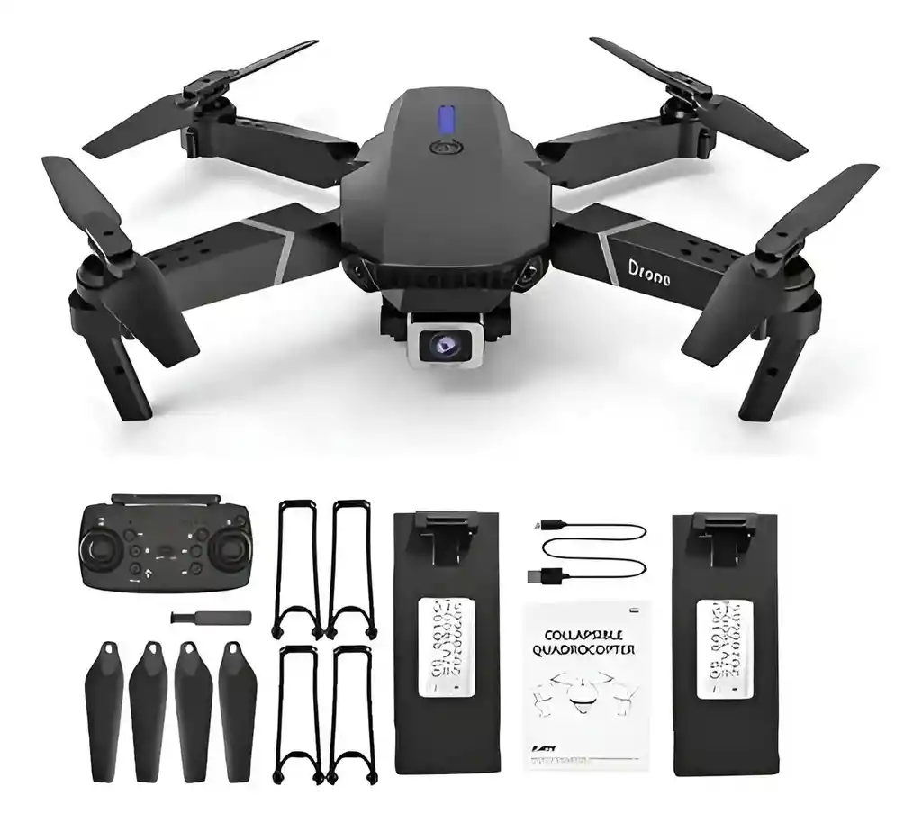 Si siempre has querido volar un dron sin complicaciones, el Dron E88 1080P es justo lo que necesitas. Este dron combina diversión, tecnología y facilidad de uso en un diseño compacto y plegable que puedes llevar a cualquier parte. Su cámara HD 1080P te permite capturar fotos y vídeos de alta calidad desde el aire, perfectos para compartir en redes o guardar recuerdos únicos. Gracias a su conexión WiFi y control por aplicación, puedes ver en tiempo real lo que graba y manejarlo desde tu móvil como todo un piloto profesional. El Dron E88 es ideal para principiantes y niños, ya que incorpora modo sin cabeza, retención de altitud y retorno automático, funciones que hacen que volar sea más sencillo y seguro. Además, su sistema de evasión de obstáculos evita choques inesperados, así que puedes volarlo tanto en interiores como en exteriores con total confianza. ¿Quieres un toque extra de diversión? Activa su giro de 360 grados y sorprende con acrobacias aéreas impresionantes. Ligero, resistente y estable, este dron es perfecto para aprender, practicar y disfrutar al máximo. El Dron E88 1080P no solo es un juguete, es una experiencia. Un regalo ideal para niños, jóvenes o adultos que quieren descubrir el mundo desde otra perspectiva. Medidas del producto: Dimensiones: 30 cm de largo x 30 cm de ancho x 25 cm de alto Peso: 500 gramos Contenido del paquete: 1 Dron E88 Mini 1 Control remoto 1 Cable de carga USB 4 Hélices de repuesto 1 Manual de usuario Beneficios principales: Captura fotos y vídeos en alta definición 1080P Vuelo estable y control sencillo Ideal para principiantes y niños Giros 360° para mayor diversión Evita obstáculos automáticamente Diseño plegable y portátil Preguntas frecuentes: ¿Es fácil de usar para principiantes? Sí, sus modos automáticos facilitan el control incluso para quienes nunca han volado un dron. ¿Puedo usarlo en interiores? Sí, su sensor de evasión de obstáculos lo hace seguro para interiores. ¿Se pueden ver los vídeos en tiempo real? Sí, transmite en directo vía WiFi con calidad 1080P. ¿Necesita baterías adicionales? Solo el control remoto, ya que el dron se recarga mediante USB.