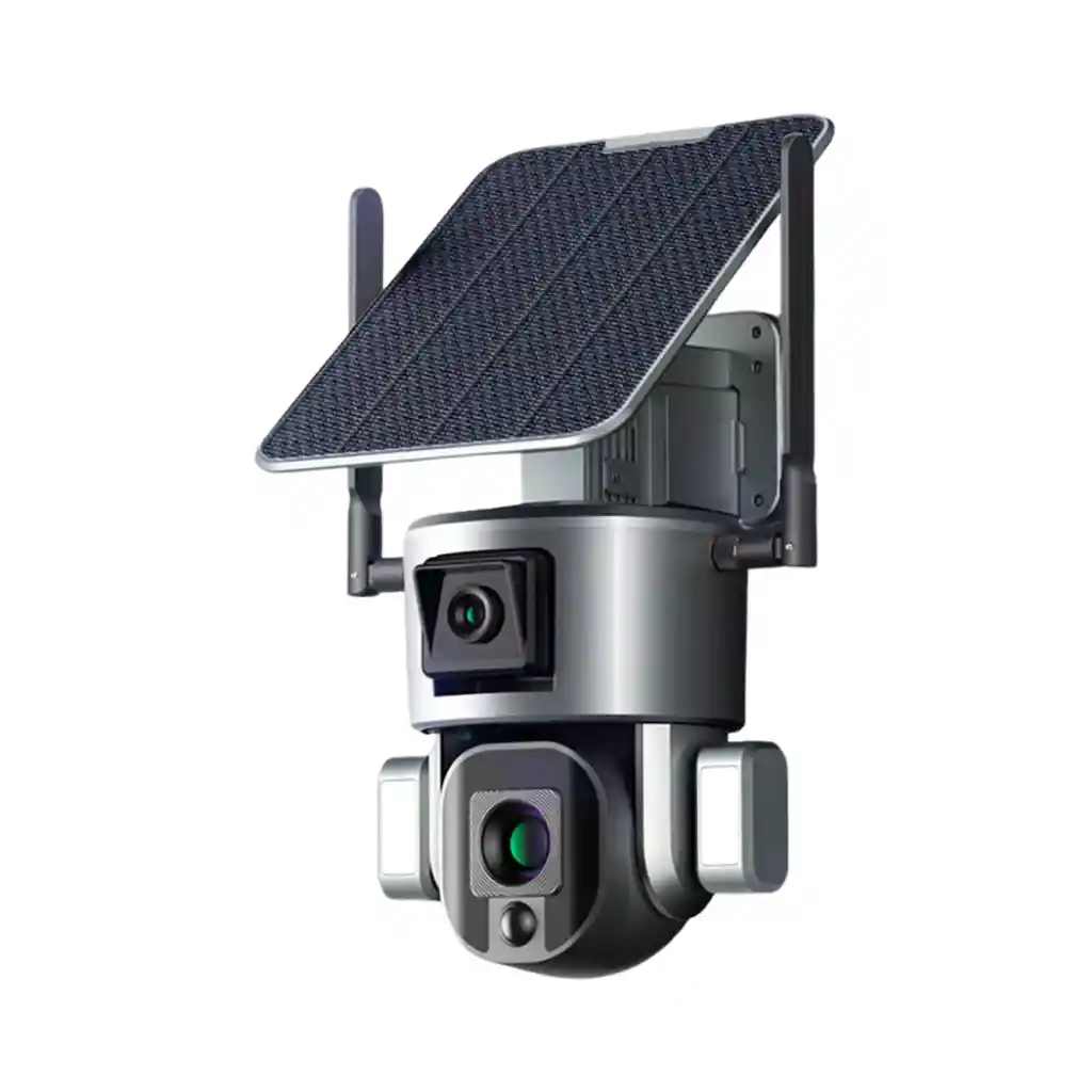 Cámara solar inteligente Lexa ideal para vigilancia exterior sin cables ni consumo eléctrico. Su panel solar integrado mantiene la batería cargada, garantizando funcionamiento continuo. Incorpora doble lente HD, visión nocturna infrarroja y rotación 360° para cobertura total. La conexión WiFi permite monitoreo remoto desde el celular, con detección de movimiento, audio bidireccional y alertas en tiempo real. Resistente al agua y fácil de instalar. Características principales Alimentación por energía solar con batería recargable Resolución HD 1080p Rotación 360° y doble lente gran angular Visión nocturna infrarroja automática Conectividad WiFi 2.4 GHz Audio bidireccional y detección de movimiento PIR Resistencia IP66, ideal para exteriores
