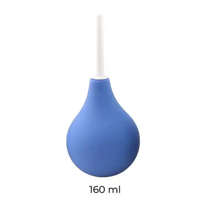 Evacua la mayor cantidad de desechos de forma natural. Limpia la ducha y la boquilla Usa lubricante en la boquilla para fácil inserción. Prepara tu orificio anal, usa un dedo limpio lubricado Inhala e inserta la boquilla, mientras exhalas. Aprieta la bomba para introducir la solución, sonten el liquido un momento antes de soltarlo Repite estos pasos hasta que el agua salga limpia Material: Goma medica Capacidad: 160 ml Color: Negra O Azul ( disponible en tienda )