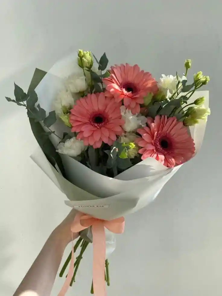 Un arreglo vibrante y delicado que combina la ternura de las rosas mini en tonos pastel con la alegría y frescura de las gerberas. Perfecto para alegrar cualquier espacio y expresar cariño con un toque de elegancia natural.
