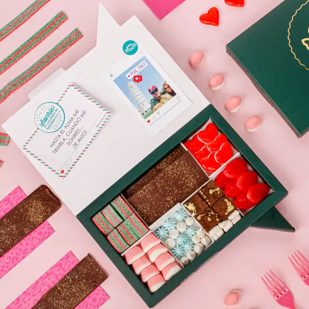 Una combinación de dulces con merenguitos de yogur exclusivos, chocolate artesanal relleno de arequipe 🍫 y los exquisitos brownies melcochudos de la marca Boreal 🥧. Esta combinación logra que esta cajita de felicidad sea mágica. La cajita No incluye foto. Los dulces pueden variar según disponibilidad de los productos.