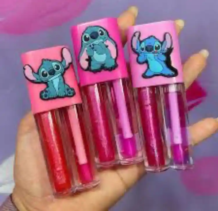 Este es un brillo labial doble de Stitch con un lado hidratante y otro con brillo incoloro