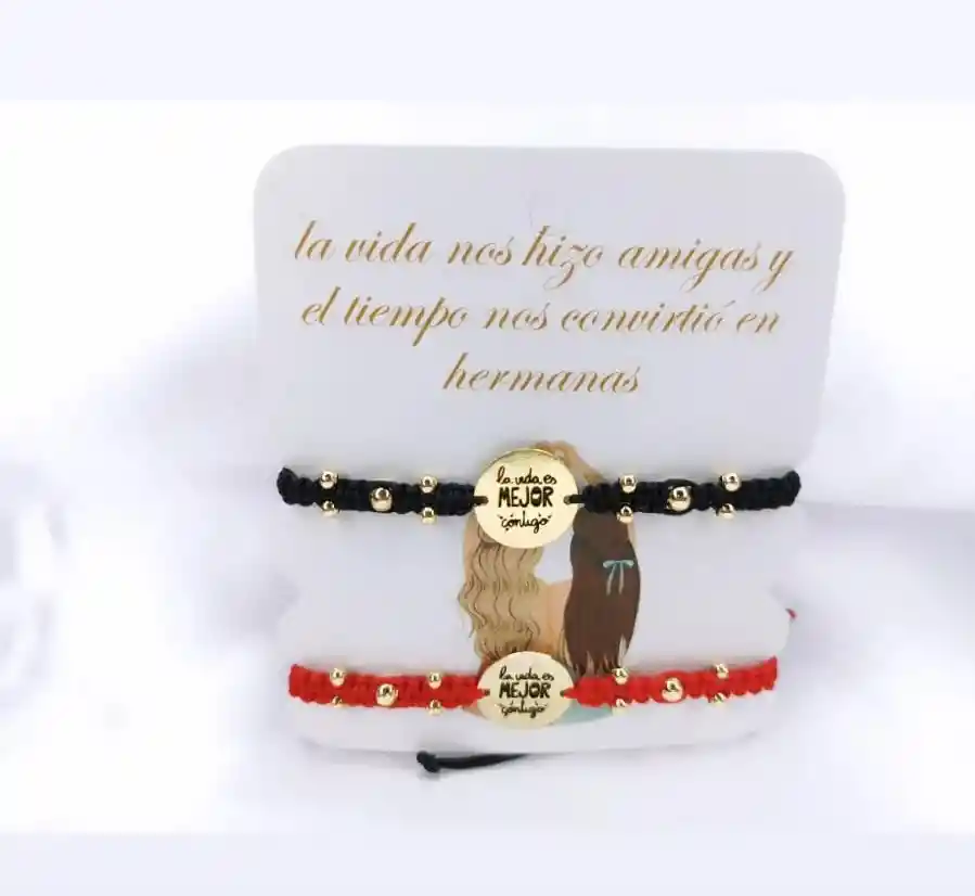 HERMOSO DUO DE MANILLAS DE COLOR NEGRO Y ROJO PERFECTA PARA QUE LA COMPARTAS CON TU HERMANA