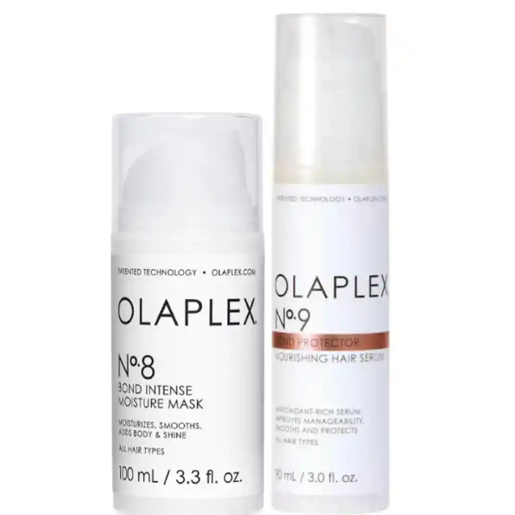 Mascarilla Hidratante OLAPLEX N8 La mascarilla Olaplex N8 reparadora 4 en 1 de alta concentración que brinda volumen y brillo, a la vez que humecta profundamente para tratar el cabello dañado. Al usarse el cabello se vuelve más suave y más liso. Proporciona beneficios residuales que duran varias lavadas. 2 veces más Brillo 2 veces más Hidratación 6 veces más Suavidad Usar semanalmente para obtener mejores resultados, para obtener una mayor reparación en casa, usar junto con: Nº 0 Tratamiento Reconstrucción Intensivo Nº 3 Perfeccionador de Pelo Una vez por semana o la intensidad que sea necesaria. Mascarilla capilar que funciona en todo tipo de cabello. La mascarilla OLAPLEX Nº8 cuenta con todas las garantías de calidad de Olaplex: PRODUCTO VEGANO Sin DEA, aldehídos y formaldehídos GLUTEN FREE PH equilibrad SIN FRUTOS SECOS LIBRE DE FOSFATOS LIBRE DE PARABENOS OLAPLEX N°9 Suero Protector Nutritivo 90ml Es un suero libre de siliconas y rico en antioxidantes que mejora cualquier rutina capilar para proteger y perfeccionar todos los tipos de texturas del cabello . EL ESCUDO CAPILAR CONTRA DAÑOS POR QUÉ LO NECESITAS La contaminación daña nuestro cabello todos los días, dejando el cabello opaco, sin vida, difícil de peinar y provocando la ruptura de los enlaces internos. El N°9 está cargado de antioxidantes para neutralizar los radicales libres, actuar como escudo contra la contaminación y funciona como protector térmico. Con extracto de algas rojas, rico en antioxidantes y OLAPLEX bond Building Technology científicamente comprobada. UTILÍZALO SI: Tienes Frizz Tu cabello se enreda fácilmente No posee brillo, ni suavidad Si con frecuencia utilizas secador y plancha El cabello se parte con facilidad Tienes puntas abiertas
