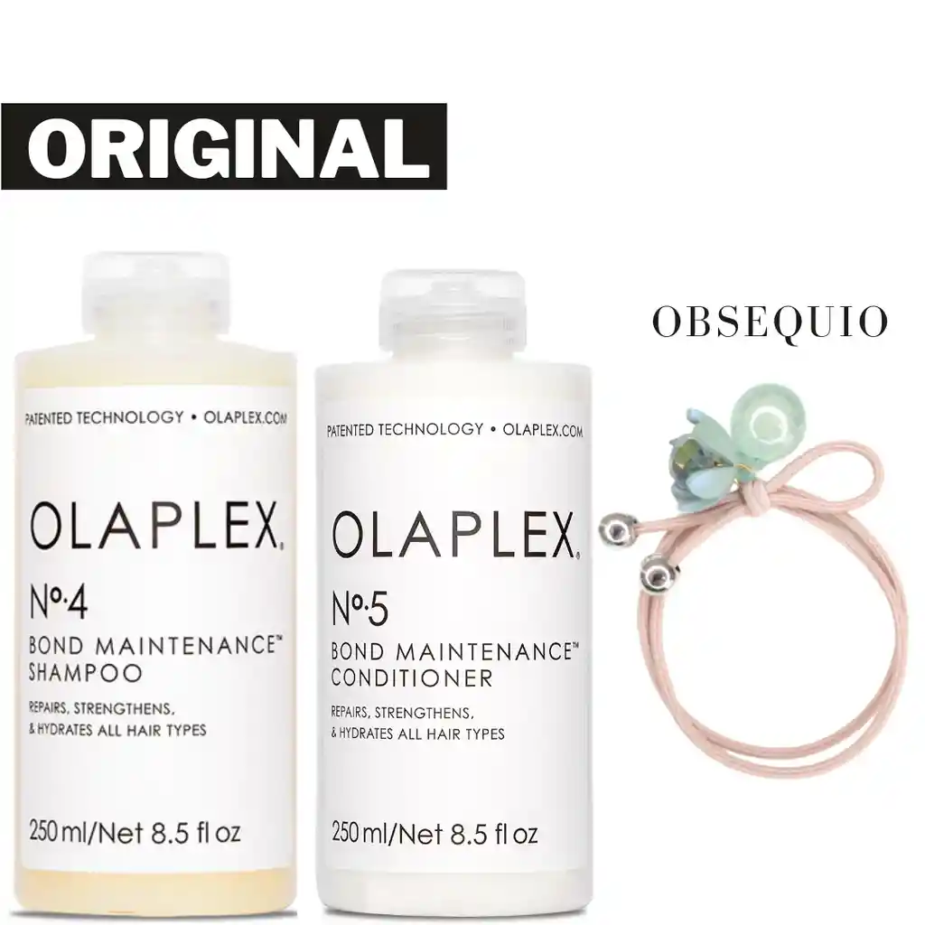 Champú n.º 1 en Prestige Haircare* Un champú reparador y muy nutritivo. N°4 Shampoo repara y protege el cabello del estrés diario —incluido cabello dañado, puntas abiertas y encrespamiento— al volver a conectar los enlaces rotos. Deja el cabello más fácil de peinar, más brillante y más sano con cada uso. N°4 no daña el color y se ha demostrado que reduce la rotura del cabello y fortalece todo tipo de cabello. OLAPLEX 5 ACONDICIONADOR Olaplex 5 es un acondicionador altamente reparador del cabello, además hidrata, aporta brillo, sella las puntas abiertas, reduce el encrespado y reconstruye la fibra dañada del pelo desde el interior sin añadir peso. Complementa el ritual de Olaplex 1 y 2 así como el paso 4, el champú Olaplex. Acondicionador libre de parabenos, sulfatos, gluten y cruelty free. Fórmula vegana y respetuosa con la coloración del cabello. Indicado para todo tipo de cabello y texturas. Formato de 250 ml. Accesorio para el cabello, puede variar diseño y color
