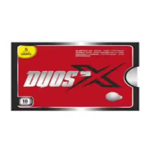 DUOS X es un alimento en disco elaborado con maltodextrina, maca y L-arginina, y fortificado con vitaminas del complejo B, vitamina A y zinc. Presentación en discos individuales para consumo diario.