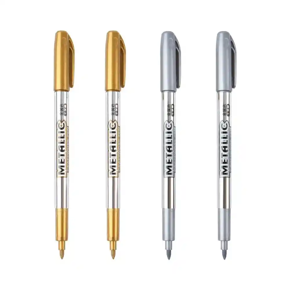 Bolígrafos metálicos plateados y dorados: la tinta metálica brillante le da un hermoso brillo a una variedad de proyectos de manualidades en bonitos colores metálicos. Las letras o marcas formadas con ellos destacan tanto contra fondos oscuros como claros debido al brillo metálico de la tinta. Nota: los marcadores dorados pueden ser menos metálicos. El oro se ve más como el color amarillo sol que un oro. Marcadores metálicos de punta bala: el paquete incluye 2 bolígrafos dorados y plateados cada uno. Punta de bala de aproximadamente 0.059 in de ancho, para hacer líneas muy limpias. Perfecto para escribir, dibujar y colorear. Los rotuladores metálicos con aplicación extremadamente suave son excelentes para proyectos de arte, manualidades de papel negro, álbumes de fotos, firmas elegantes, dibujo, fabricación de regalos, tazas personalizadas, pintura de roca y decoraciones navideñas.