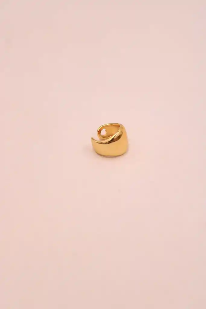 Ear cuff dorado ancho en material covergold, de diseño moderno y elegante, ideal para destacar tu look con estilo y brillo. ✨