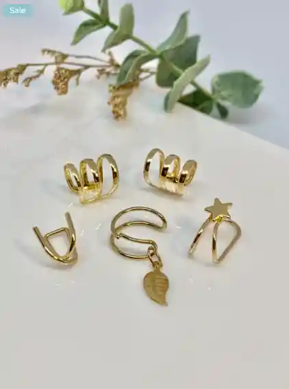 Ear cuff set x5 clips dorados + Ear cuff hoja colgante / ajustables – no necesitas perforación Aleación chapado en oro Recomendaciones y cuidados: Para preservar el color te recomendamos no mojarlas, evita la humedad. NO aplicar líquidos y químicos tóxicos(perfumes, splash, cremas, alcohol, etc) Almacena tus joyas por separado en los empaques de tela entregados con tus productos. POETRY no garantiza que el baño de oro y cualquier material de nuestros modelos dure para siempre. Las piezas bañadas y chapadas en oro, acero inoxidable, acero titanio, son por defecto, más frágiles y susceptibles de perder el color con el paso del tiempo. Para mayor información te invitamos a leer el link cuidado de tus Accesorios.