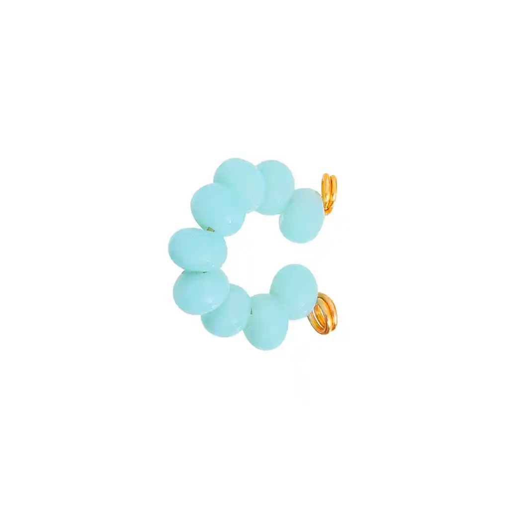 TIPO DE PENDIENTE QUE NO PRECISA DE AGUJERO EN LA OREJA PARA LLEVARLOS. ELABORADO EN PERLAS NEGRAS PEQUEÑASY UNA MURRINA DE COLORES TIPO OJO TURCO Y ALAMBRE DORADO PARA APERTURA Y SUJECIÓN