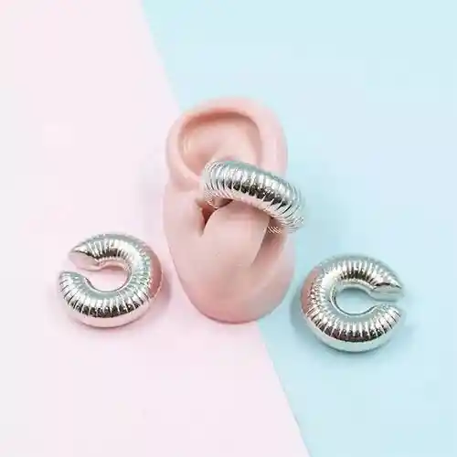 Earcuff chunky lined plateado