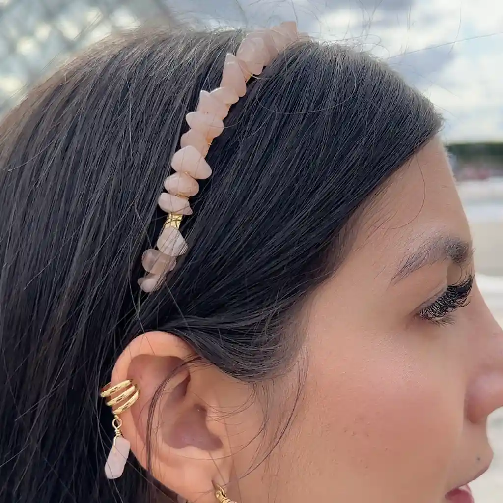 Hermoso earcuff en cuarzo rosa para proteger tu energía y complementar tus outfits.