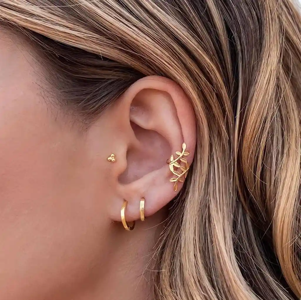 Earcuff dorado en forma de hoja, elegante y divino para usar en ocasiones especiales. (Precio por unidad) Material: Rodio Color: Dorado Cuidados: Recomendamos guardar por separado cada accesorio, almacenarlos en lugares secos y a temperatura ambiente; limpiarlos con un pañito o franela y sin ningún tipo de producto, evitar contacto con productos químicos como cremas y perfumes, no dormir ni bañarse con ellos. La durabilidad de los accesorios depende 100% del cuidado de cada persona.