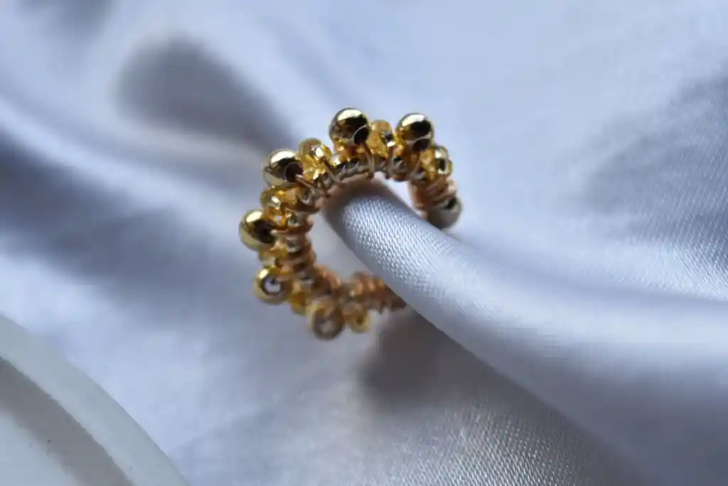 Earcuff en rodio con perlas amarillas y doradas en diseño unico, tiene un tamaño de 2CM. No requiere perforación y es ideal para un regalo.