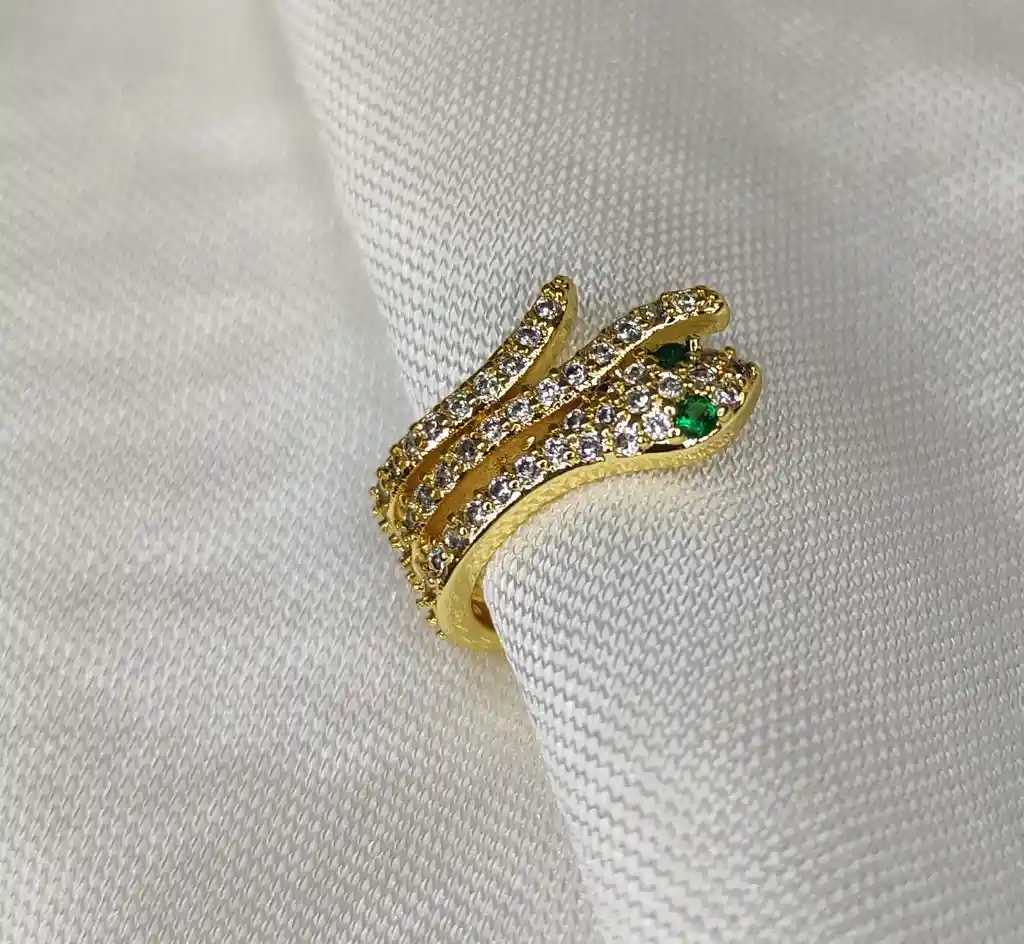 Earcuff de serpiente en rodio con circones blancos y verdes