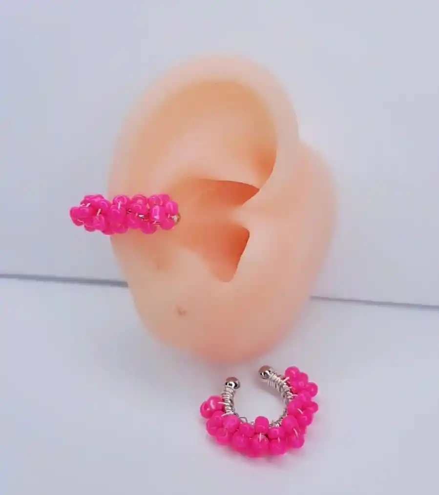 HERMOSO EARCUFF TEJIDO CON PIEDRAS FUSCIA, ELABORADA EN MOSTACILLA, PERFECTA PARA COMBINAR TU OUTFIT, TE VERAS HERMOSA, ÚNICA Y A LA MODA