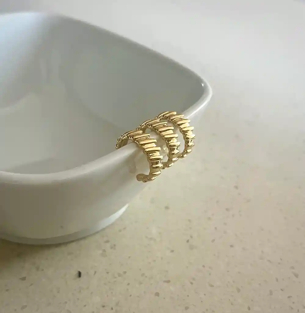 Earcuff en tendencia, dorado y llamativo. Perfecto para armar tu earparty soñado. (Precio por unidad) Color: Dorado Material: Aleación con baño en 24 k Cuidado: Recomendamos guardar por separado cada accesorio, almacenarlos en lugares secos y a temperatura ambiente; limpiarlos con un pañito o franela y sin ningún tipo de producto, evitar contacto con productos quimicos como cremas y perfumes, no dormir ni bañarse con ellos. La durabilidad de los accesorios depende 100% del cuidado de cada persona.