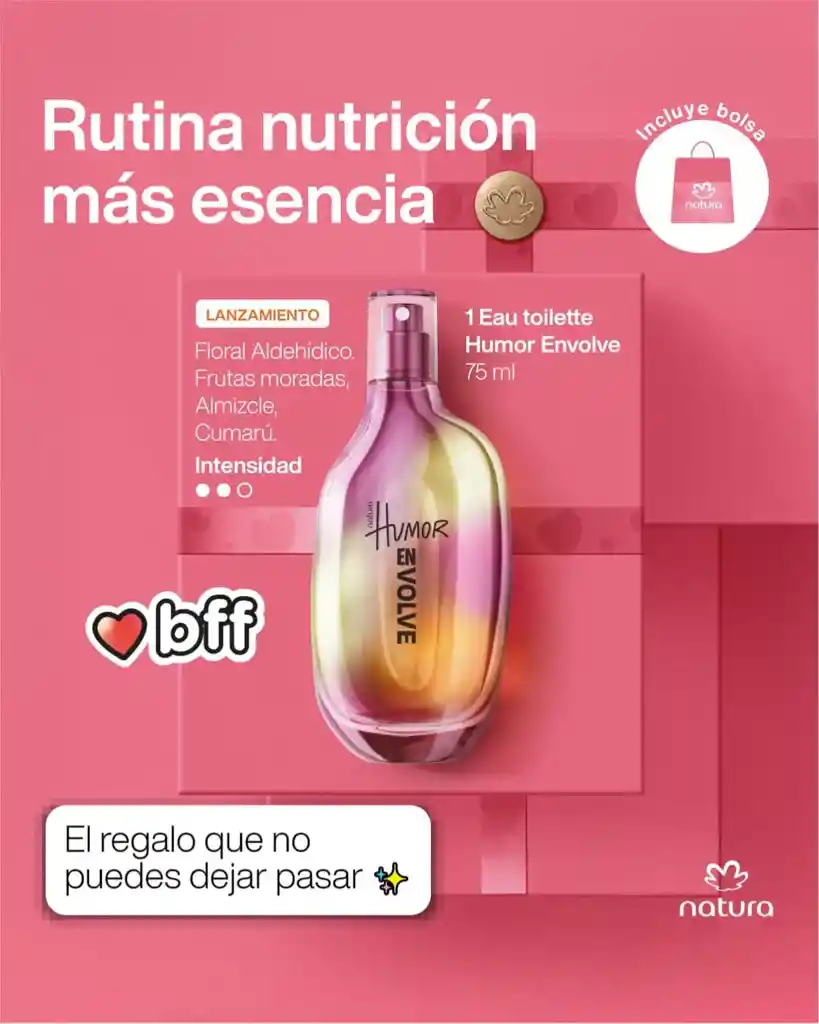 Floral Aldehídico, frutas moradas, almizcle, cumarú.