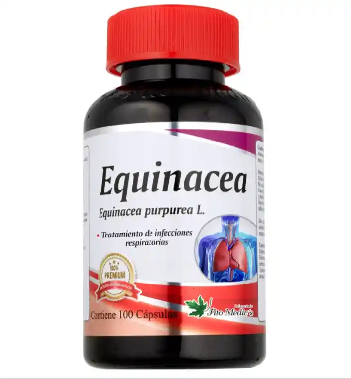 Echinacea Capsulas x100 Laboratorio Fitomedics Producto Natural de VENTA LIBRE No es un medicamento No exceder su consumo, Si los sintomas persisten consulte a su medico .
