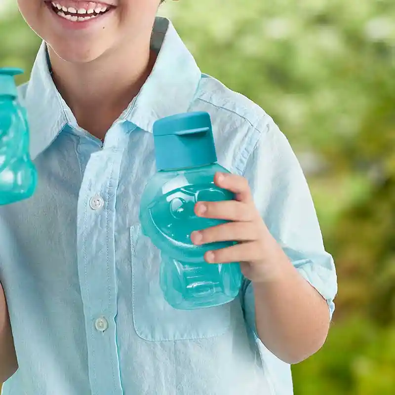 Consiente a tus hijos mientras fomentas en ellos el buen hábito de tomar agua con el Eco Kid Pirata. Los niños disfrutarán de sus bebidas favoritas con esta divertida y funcional botella con diseño de Pirata Su diseño es ergonómico para que los niños puedan sostenerla fácilmente, además la boquilla evita derrames. Su sello hermético evita que el líquido se salga mientras está cerrada y es muy fácil de abrir y cerrar. El orificio ancho de la botella facilita su llenado y limpieza. Dimensiones: Ø 8 x 15 cm de alto c/u Cap.: 350 ml. Producto Libre de BPA.