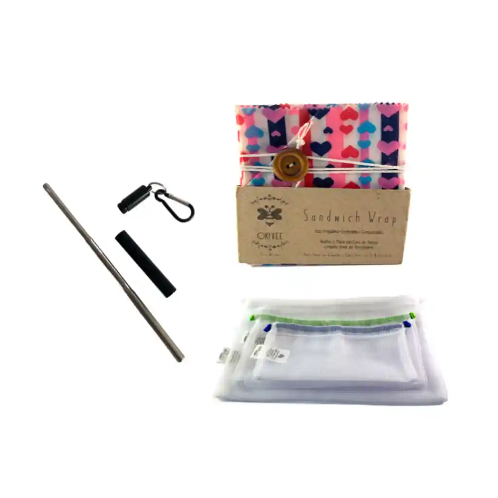 Bolsas reutilizables para mercado x 6 unidades. pitillo reutilizable con estuche para cargar portátil. Eco Wrap: envoltura natural con cera de abejas para proteger alimentos.