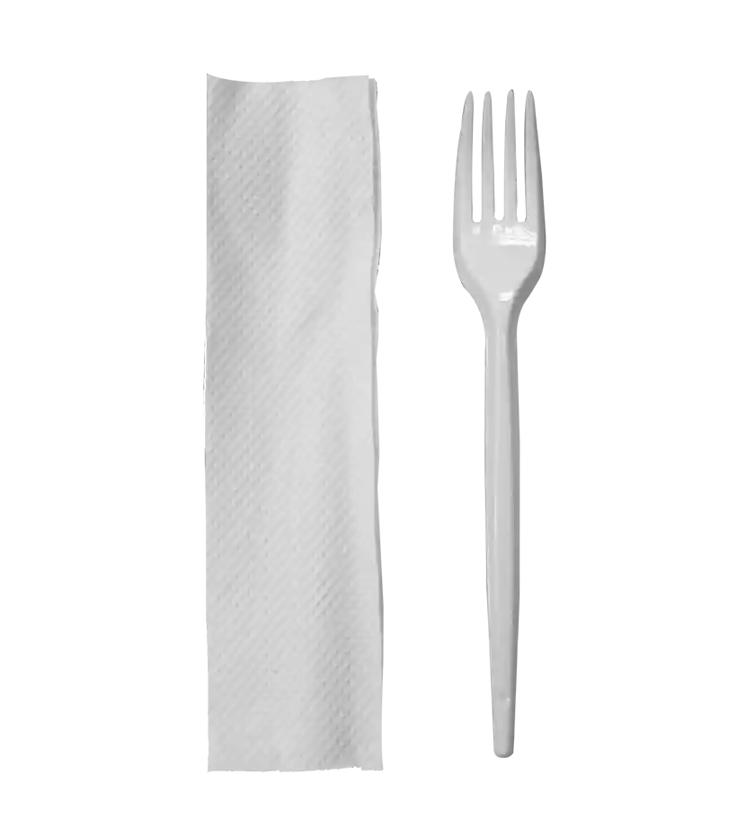 Set de tenedor y servilleta biodegradable. Elaborados a base de almidón de maíz packing: Sin Packaging