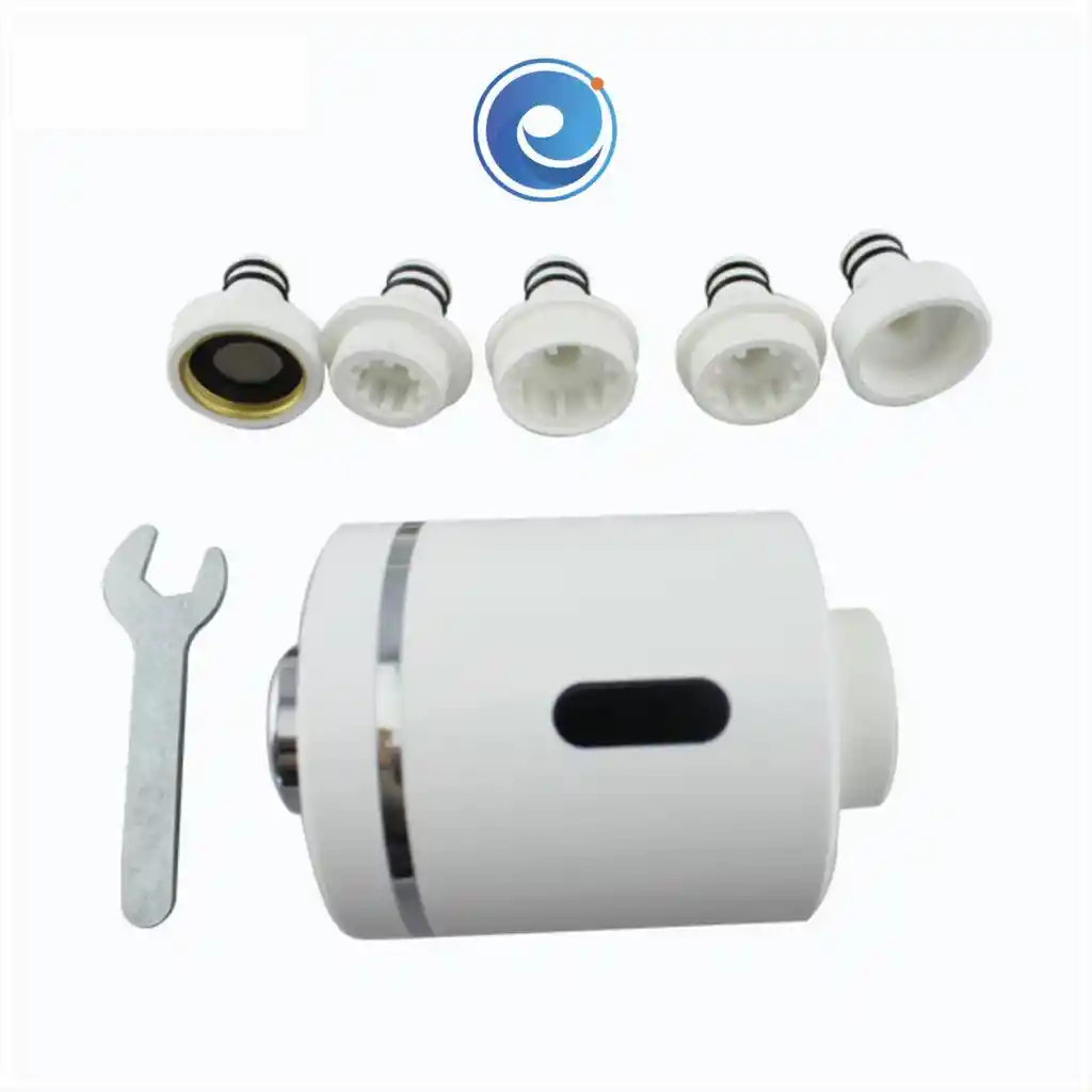 ECONOWATER AUTOMATICO BLANCO Presión de agua: 0.05-0.8Mpa (7.25-116psi) Fuente de alimentación: batería de litio de 3.7v (400 mAh) Distancia de inducción: lado 1-10cm Boquilla de grifo de montaje: Hembra M22 M20 G1 / 2-14 y Macho M24 M22 M20 No es necesario recargar o reemplazar la batería, 100 veces / día, puede usar 5 años Rango automático del sensor Evita la infección por gérmenes por evitar tocar las manijas de los grifos. Instalación rápida y fácil. Se adapta a la mayoría de las llaves estándar