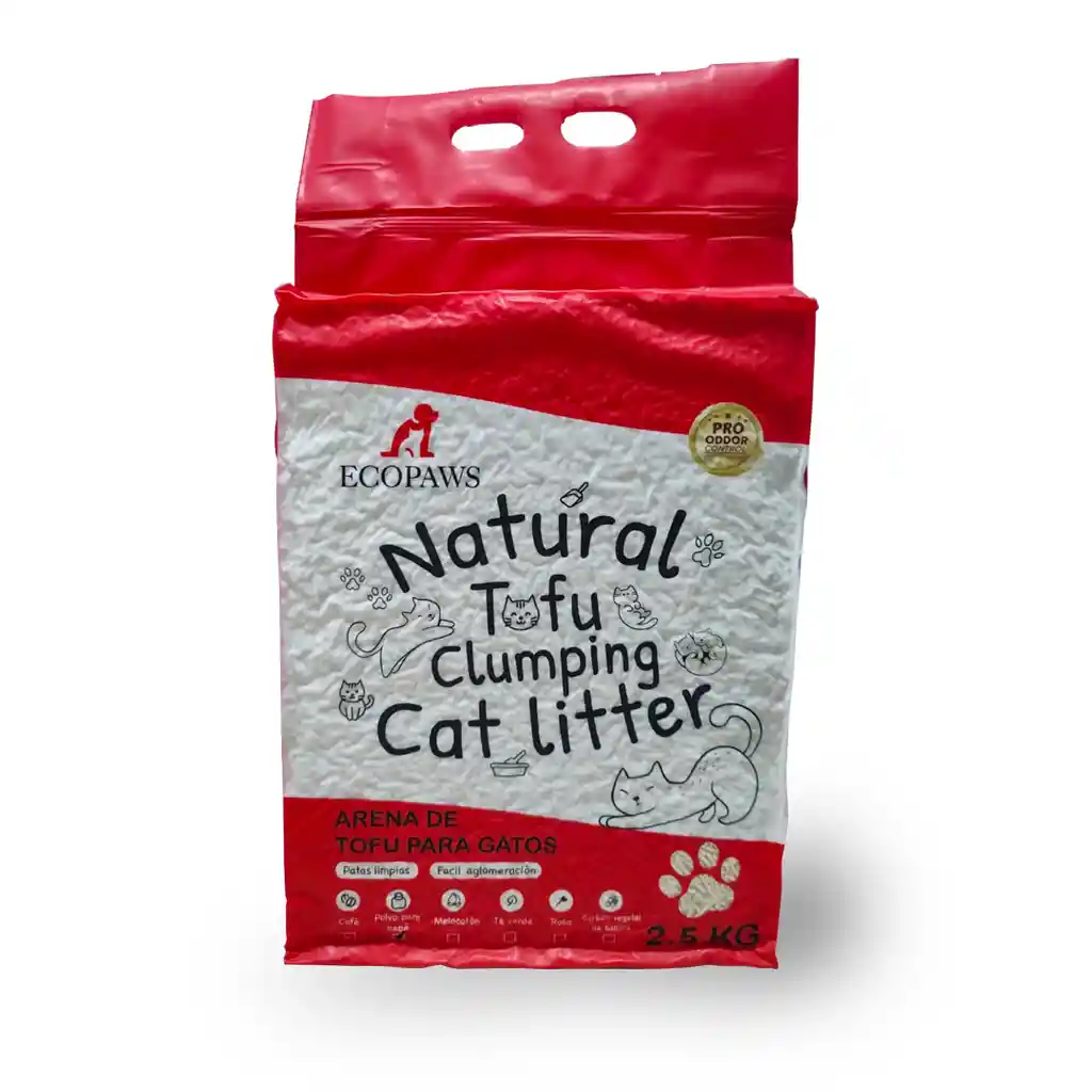 Arena Ecológica Premium para Gatos hecha de Tofu 100% natural y biodegradable. Aglutinante, sin polvo y máximo control de olores. Seis aromas.