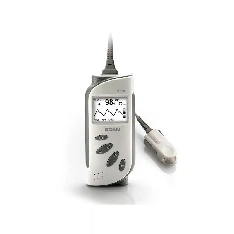 Características: Pantalla lcd Portátil Pulso oxímetro (spo2) adulto. pediátrico y neonatal Alarmas Display numérico Visualización onda pletismográfica de spo2 Medición de temperatura opcional (h100n)