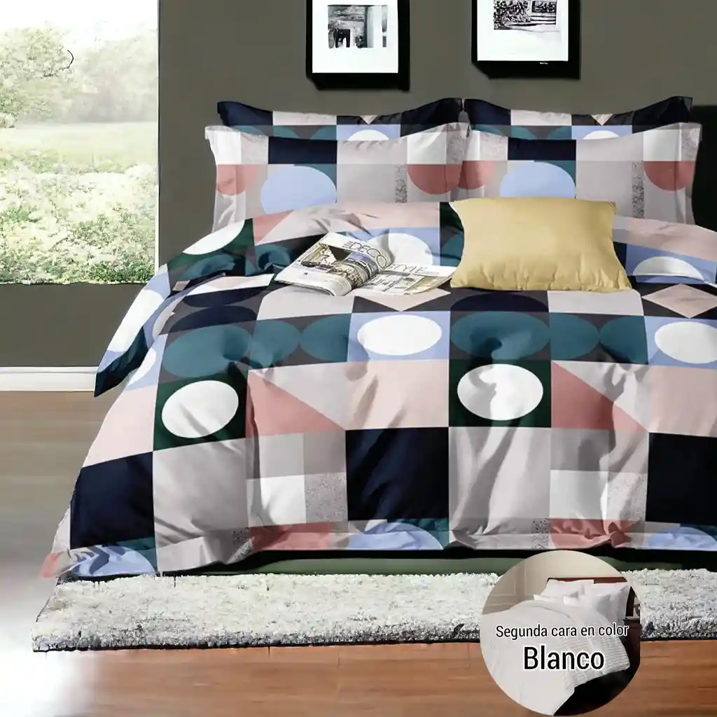 Tu cama con un estilo único lleno de lujo y suavidad, con este edredón doble faz estampado por una cara y unicolor por la otra, en tela microfibra satinada extrasuave y cepillado industrial para mayor suavidad. Relleno: Fibra de poliéster de 180 gr. Tela extra suave con planchado permanente. Edredón especial para climas fríos. Para colchones de hasta 28 cms de alto. Incluye: Edredón, dos fundas y dos cojines decorativos. Material: Microfibra Extra Suave. Medida Cama: 1.60 x 1.90 cm. Medida Edredón: 2.16 x 2.18 x 28 cm. Peso: 1.6 Kilos Nota: Las formas en el decorado de la tela unicolor pueden variar entre líneas, flores, hojas y círculos. INSTRUCCIONES DE LAVADO: • Lavar en seco. • Use ciclo suave en la lavadora. • Use detergente líquido. • No use cloro. • No retorcer. • No usar cepillo. • No lavar o secar a vapor.