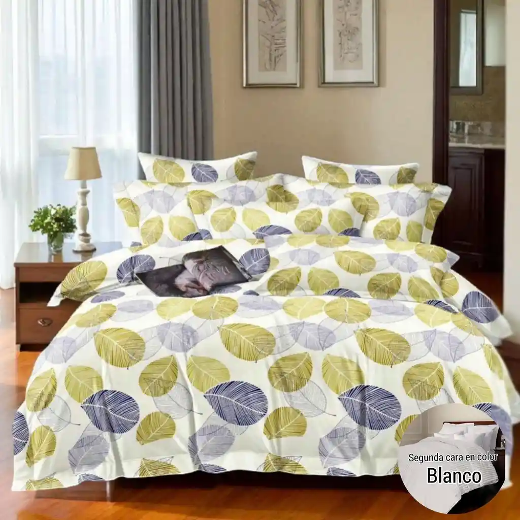Transforma tu habitación en un oasis de comodidad y estilo con nuestro edredón doble faz de alta calidad. Diseñado para proporcionarte un sueño reparador y un toque de elegancia en tu decoración. Características: Material extrasuave: Microfibra de alta calidad que te envuelve en comodidad y suavidad. Doble faz: Una cara con un estampado vibrante y colorido, y la otra con un tono blanco puro y elegante. Relleno de alta calidad: Fibra siliconada de 180 gramos que proporciona calidez y ligereza. Incluye: 1 edredón doble faz con estampado y blanco. 2 fundas para un fácil lavado y mantenimiento. 2 cojines decorativos para agregar un toque de estilo a tu habitación. Diseño versátil: Puedes elegir la cara que prefieras según la temporada o tu estado de ánimo. Especificaciones: Cama doble: Diseñado para camas de 140x190 cm. Altura del colchón: Compatible con colchones de hasta 28 cm de altura. Importante: La imagen fue ambientada y solo incluye los elementos mencionados en el apartado ""Incluye"". No incluye otros objetos o decoraciones que puedan aparecer en la imagen. Cuidados y Mantenimiento: Lavar en ciclo suave con agua fría. No usar blanqueador ni productos químicos agresivos. No retorcer ni exprimir excesivamente. Secar al aire libre o en secadora a baja temperatura. Planchar a baja temperatura si es necesario. ¡Duerme como en un sueño! Nuestro edredón doble faz es perfecto para cualquier persona que busque comodidad, estilo y versatilidad en su hogar. ¡No te pierdas la oportunidad de experimentar el sueño perfecto!