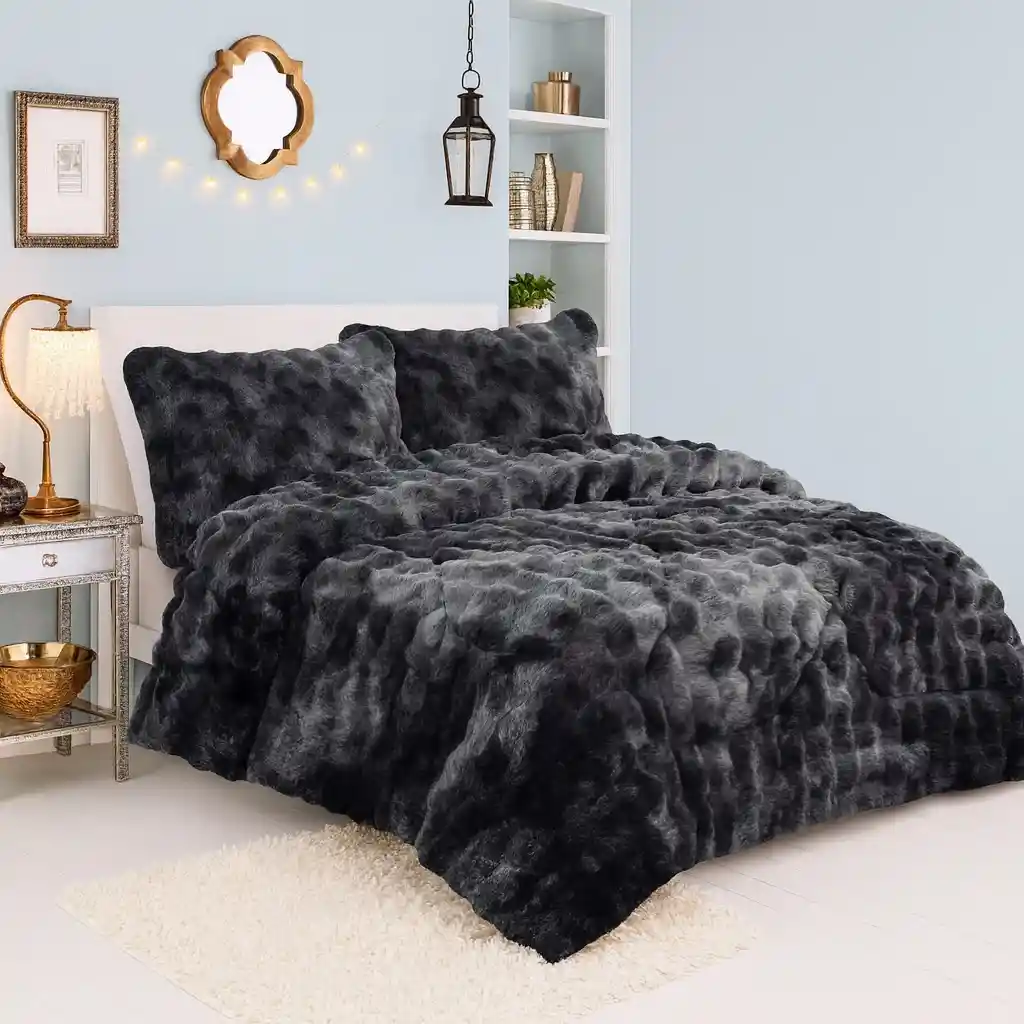 Edredón Honeysoft Velvet Tamaño Doble Burbuja Negro Con Fundas Y Cojines