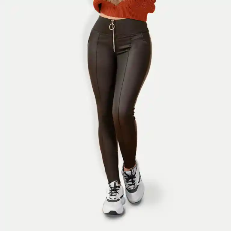 Jean elaborado en cuero sintético. Color negro. Bota tubo – Tobillero. Tiro alto