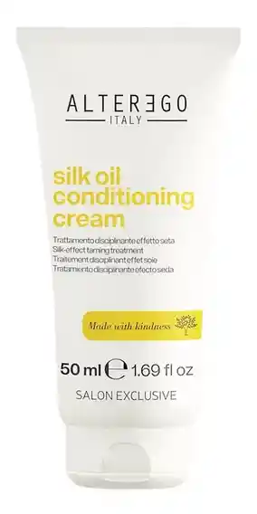 Acondicionador Silk Oil Alterego Italy Tratamiento intensivo para cabello natural y tratado. Proporciona brillo y suavidad. Fuerte acción anti frizz para un efecto sedoso. Alisa el cabello sin apelmazarlo. 99% de ingredientes de origen natural. Nuestro Cumplimiento y Calidad es nuestra mejor presentación, productos 100% Originales ! Compra con la seguridad que recibirás toda la asesoría de expertos técnicos capilares certificados en cuidado, prevención y estética. MECHU2 PELUQUERIAS