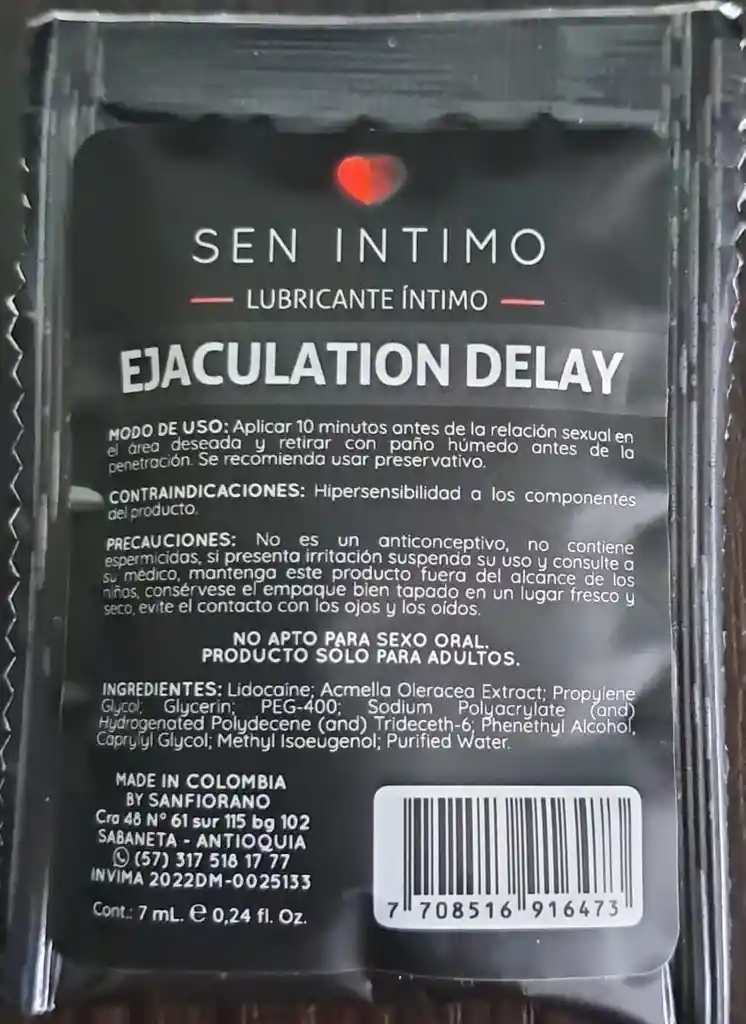 Lubricante intimo EJECULATION DELAY SEN INTIMO