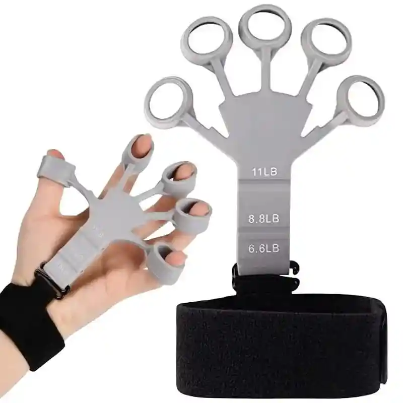 Ejercitador de dedos: Con la banda de dedos manual, puede mejorar entrenar sus dedos, y manos. Es adecuado para todas las edades y para todos los tamaños de mano. Este producto es ideal para musicos, deportistas, para quienes utilizan los ordenadores y teléfonos móviles con regularidad. Material de alta calidad: está hecho de material de silicona de alta calidad, que es seguro y duradero. Diseño portátil y liviano, así que podrás llevarlo a donde desees Resistencia seleccionable: El producto B rinda niveles de resistencia seleccionables, (6.6LB, 8.8LB, 11LB). Especificación: Material: silicona Nivel de resistencia: 6.6LB, 8.8LB, 11LB Color: gris