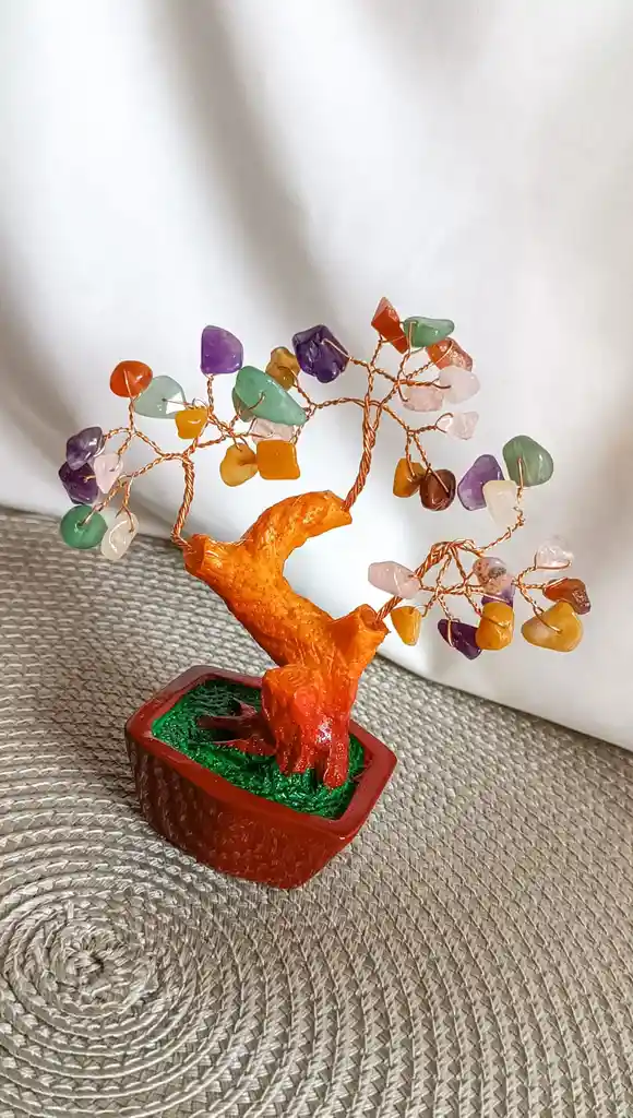 El Árbol de la Vida con Todos los Cuarzos es una pieza artesanal extraordinaria que fusiona la estética natural con la poderosa energía de una variedad de cristales. Este árbol, elaborado a mano con meticulosas ramas de alambre, sostiene una colección diversa de cuarzos, cada uno seleccionado por sus propiedades únicas y beneficiosas. En sus ramas se encuentran cuarzos de diferentes colores y tipos, como el cuarzo rosa para el amor y la paz interior, la amatista para la claridad mental y la protección, el citrino para la prosperidad y la creatividad, y muchos más. Esta diversidad de cristales no solo aporta una vibrante paleta de colores, sino que también proporciona un equilibrio energético integral, armonizando el cuerpo, la mente y el espíritu. El diseño del Árbol de la Vida simboliza crecimiento, fortaleza y conexión con el universo, mientras que los cuarzos amplifican estas cualidades con sus energías específicas. Cada rama y cada cristal trabajan en conjunto para crear una sinfonía de bienestar y belleza. Este Árbol de la Vida con Todos los Cuarzos es ideal para cualquier espacio que busque un toque de elegancia y energía positiva. Perfecto para el hogar, la oficina o como un regalo significativo, esta pieza no solo embellece el entorno, sino que también actúa como un talismán de protección, equilibrio y crecimiento espiritual. Con su diseño detallado y su poderosa simbología, este árbol es un tesoro tanto visual como espiritual, proporcionando armonía y belleza en cualquier ambiente