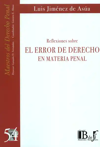 Luis Jiménez de Asúa - Editorial: Editorial B de F. Año: 2019. Conceptos. Historia. Legislaciones. Teori?A de la Unificacio?N y Debate Sobre Sistema?Tica. Efectos Del Error de Derecho. Introduccio?N Biogra?Fica Por Gonzalo D. Ferna?Ndez. Coleccio?N: Maestros Del Derecho Penal no 54.. Derecho. Derecho Penal. ISBN: 9789974745872