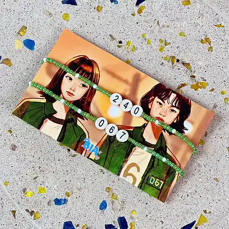 Conoce nuestra edición especial del JUEGO DEL CALAMAR! Pulseras hechas de mostacillas, con los números de tus personajes favoritos de la serie! ¿Cuál es el tuyo? ⏺🔼⏹