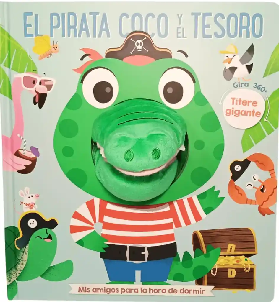 El pirata coco y el tesoro con Títere Gigante. Una fantástica colección interactiva de 10 páginas para conectar a padres e hijos, lee historias y prepara tus mejores imitaciones para pasar momentos únicos con tus amigos para la hora de dormir.🐊