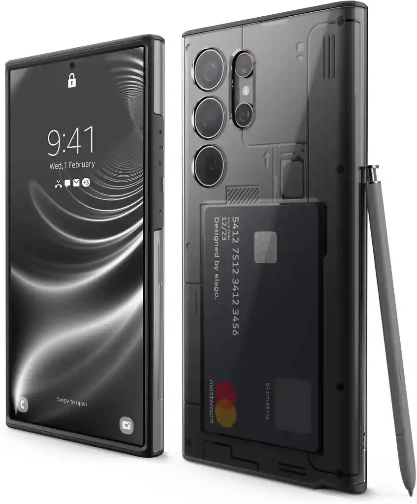 Estuche para Galaxy S24 Ultra X-Ray Elago disponible en Negro Transparente La nueva funda de rayos X es compatible con Samsung Galaxy S24 Ultra y tiene un diseño retroceso, que hace referencia a las máscaras de teléfono móvil de Elago creadas en 2009. Características: - Utilizando dos materiales para crear esta funda, la funda híbrida elago mezcla policarbonato y TPU en una mezcla perfecta que ofrece una increíble protección diaria contra caídas, suciedad, polvo y aceite. El protector de cámara proporciona una capa adicional de protección para tus increíbles cámaras. - La funda permite un fácil acceso a tu lápiz óptico y puede contener hasta una tarjeta entre las dos capas. Almacena fácilmente una tarjeta de transporte, tarjeta de identificación, tarjeta de crédito o tarjeta de membresía para mantenerla cerca y siempre contigo.