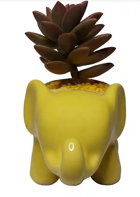Suculenta (tono natural), en matera ceramica de 12cm x 6cm, incluye sustrato 100% organico y arena decorativa. Altura total 11cm aproximadamente (la altura varia segun la especie).