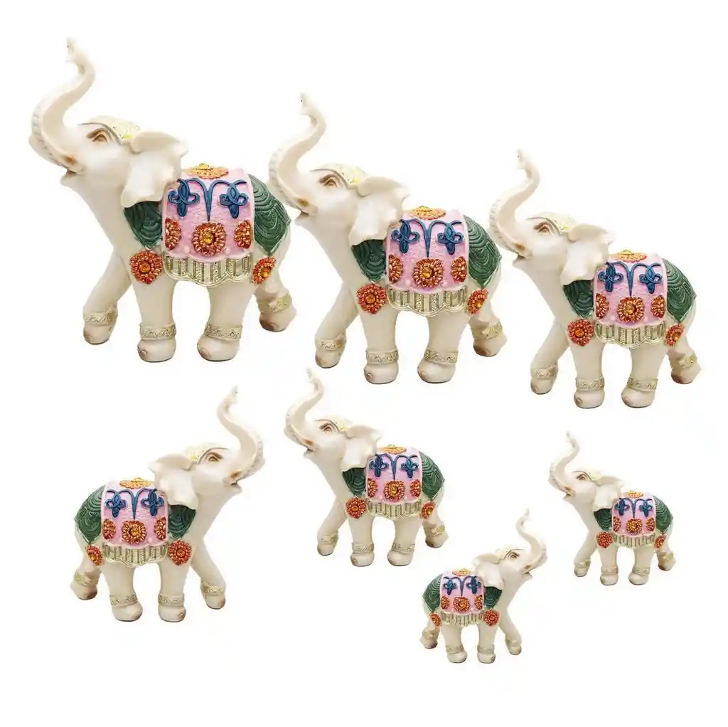 Hermoso set de elefantes siendo un símbolo de protección, la inteligencia y la buena suerte. El elefante tiene un gran significado espiritual en país asiático, donde es admirado por su longevidad, su inteligencia y su fuerza, y por estar íntimamente relacionado con el dios Ghanesa. Decora tu espacio favorito con este delicado artículo que traerá la sabiduría, armonía, serenidad a tú hogar. //// Nota: El precio corresponde a 7 elefantes como se aprecia en la fotografía y estos van variando de tamaño gradualmente. ///// Ficha Técnica: Dimensiones Figura Elefante Grande: (Ancho x Profundidad x Altura): 16 cm x 7 cm x 19 cm Material de la figura: Poli resina Dimensiones Figura Elefante Pequeño: (Ancho x Profundidad x Altura): 7 cm x 2.5 cm x 7 cm Material de la figura: Poli resina ** _Para defectos de fábrica o retractos: \**_Por favor revise el producto apenas lo reciba y antes de usarlo. No aplican ley de retracto o defectos de fábrica luego de usar el producto. Se manejan máximo 5 días para reportar defectos de fábrica (por ejemplo, producto funciona mal, piezas faltantes, rotas, etc). Para hacer efectiva la devolución el producto debe devolverse con el empaque original, el cual debe estar en buen estado, incluir todos los documentos y las partes completas y sin daños. Los cuidados y recomendaciones para mantener un producto en buen estado son los siguientes: No aplicarle perfumes ni cremas directamente, no mojarlos, no dejarlos caer y procurar limpiarlos para retirar suciedad. Precauciones: No dejar nunca una vela encendida sin vigilancia, y mantener fuera del alcance de los niños.