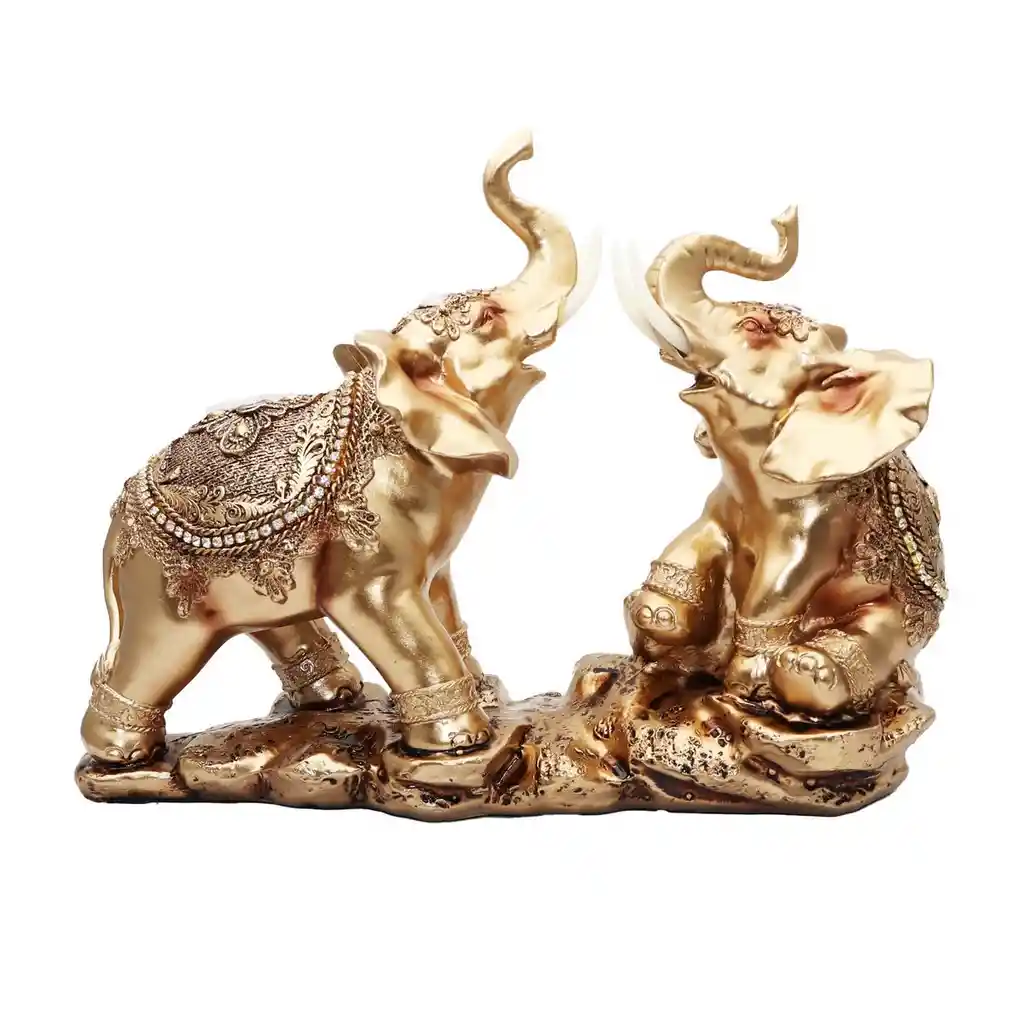 Hermoso set de duo elefantes siendo un símbolo de protección, la inteligencia y la buena suerte. El elefante tiene un gran significado espiritual en país asiático, donde es admirado por su longevidad, su inteligencia y su fuerza, y por estar íntimamente relacionado con el dios Ghanesa. Decora tu espacio favorito con este delicado artículo que traerá la sabiduría, armonía, serenidad a tú hogar. Ficha Técnica: Dimensiones ( largo x Alto x Profundidad) : 25 cm x 19 cm x 8 cm Material: Poliresina ** _Para defectos de fábrica o retractos: \**_Por favor revise el producto apenas lo reciba y antes de usarlo. No aplican ley de retracto o defectos de fábrica luego de usar el producto. Se manejan máximo 5 días para reportar defectos de fábrica (por ejemplo, producto funciona mal, piezas faltantes, rotas, etc). Para hacer efectiva la devolución el producto debe devolverse con el empaque original, el cual debe estar en buen estado, incluir todos los documentos y las partes completas y sin daños. Los cuidados y recomendaciones para mantener un producto en buen estado son los siguientes: No aplicarle perfumes ni cremas directamente, no mojarlos, no dejarlos caer y procurar limpiarlos para retirar suciedad. Precauciones: No dejar nunca una vela encendida sin vigilancia, y mantener fuera del alcance de los niños.