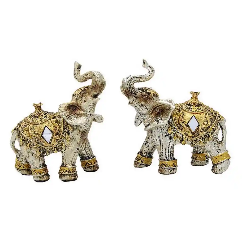 Hermoso set de elefantes duo siendo un símbolo de protección, la inteligencia y la buena suerte. El elefante tiene un gran significado espiritual en país asiático, donde es admirado por su longevidad, su inteligencia y su fuerza, y por estar íntimamente relacionado con el dios Ghanesa. Decora tu espacio favorito con este delicado artículo que traerá la sabiduría, armonía, serenidad a tú hogar. //// Nota: El precio corresponde a 2 elefantes como se aprecia en la fotografía ///// Ficha Técnica: Dimensiones Figura Elefante: (Ancho x Profundidad x Altura): 8 cm x 5 cm x 10 cm Material de la figura: Poli resina ** _Para defectos de fábrica o retractos: \**_Por favor revise el producto apenas lo reciba y antes de usarlo. No aplican ley de retracto o defectos de fábrica luego de usar el producto. Se manejan máximo 5 días para reportar defectos de fábrica (por ejemplo, producto funciona mal, piezas faltantes, rotas, etc). Para hacer efectiva la devolución el producto debe devolverse con el empaque original, el cual debe estar en buen estado, incluir todos los documentos y las partes completas y sin daños. Los cuidados y recomendaciones para mantener un producto en buen estado son los siguientes: No aplicarle perfumes ni cremas directamente, no mojarlos, no dejarlos caer y procurar limpiarlos para retirar suciedad. Precauciones: No dejar nunca una vela encendida sin vigilancia, y mantener fuera del alcance de los niños.
