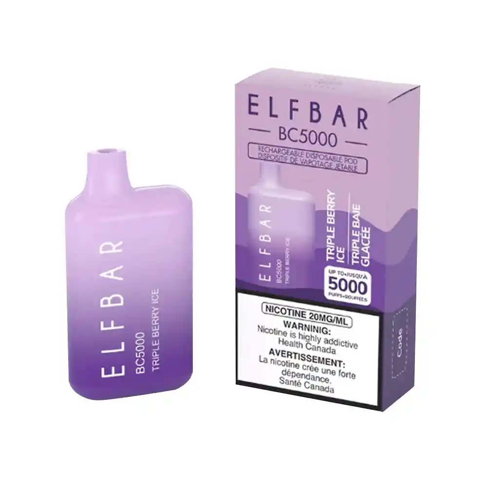 Elf Bar Bc 5.000, sabor, mezcla de Arandano azul, frambuesa y fresa. PROHIBIDA LA VENTA A MENORES DE EDAD. ADVERTENCIA: ESTE PRODUCTO CONTIENE NICOTINA, LA NICOTINA ES UNA SUSTANCIA QUIMICA ADICTIVA Y NOCIVA PARA LA SALUD. Los líquidos para vapeo contienen: propilenglicol USP, glicerina USP, sabor artificial y nicotina. Este producto puede contener nicotina, una sustancia altamente adictiva que puede generar dependencia, posibles afectaciones arteriales, cardiacas, pulmonares y otras aun no identificadas. No se recomienda su uso a mujeres en embarazo, puede generar lesiones al feto. Mantener alejado de niños y mascotas. No ingerir, puede generar irritación y/o intoxicación. Por favor antes de consumir consulte a su médico posibles afectaciones o sensibilidad a alguno de sus componentes. Los componentes de este producto pueden aumentar la sensación de ansiedad En caso de notar alguna reacción adversa por favor suspenda su uso de manera inmediata. Siga las instrucciones en el envase. No alterar sus componentes. Adquiera sus productos en sitios de confianza No use productos piratas, alterados, o en los cuales no pueda comprobar su buena procedencia, Verifique la reputación del fabricante y distribuidor antes de adquirir cualquier producto Si no es usuario fumador o vapeador no se recomienda su uso bajo ninguna circunstancia Al usar este producto usted es consciente que este producto puede generar afectaciones a su salud, incluyendo aquellas que a la fecha de la compra no se han identificado y que pueden aparecer a largo plazo.