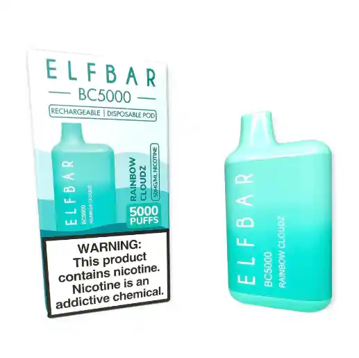 ELF BAR BC5000 RAINBOW CLOUDZ, presenta una caja pequeña pero una gran potencia! El diseño del recipiente tipo jarra de este proporciona una experiencia de usuario cómoda. Una vez que lo tengas, ¡te encantará! Elf Bar 5000, que consta de una bobina doble, ofrece los sabores más puros. Elf Bar es recargable, lo que elimina el estrés de quedarse sin energía. ¡Los colores contrastantes de este dispositivo brindan diversión y personalidad Capacidad: 13 ml Batería de 650 mAh Carga con cable tipo-c (NO in cluido) Todos los sabores pueden contener trazas de menta y/o mentol.